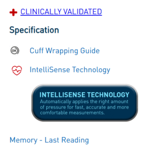 يقوم جهاز IntelliSense™ بنفخ الكُفّة إلى المستوى المثالي مع كل استخدام. ولا يحتاج المستخدم إلى إجراء أي تعديلات لاختيار مستوى النفخ. ويُعد هذا مفيدًا بشكل خاص لمرضى ارتفاع ضغط الدم وللأشخاص الذين يعانون من بعض اضطرابات نظم القلب أو أمراض القلب، لأن ضغط دمهم قد يتقلب.